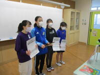 全校朝会をライブ配信で行いました。はじめに,柏駅伝大会,こども県展,書星会など,たくさんの表彰がありました。