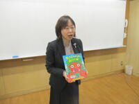 1つ目は「こども司書」の読み聞かせです。「くまのこ としこし」です。校長先生も加え群読しました。