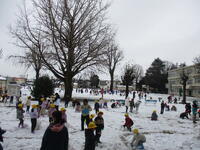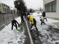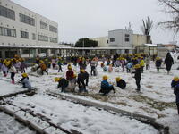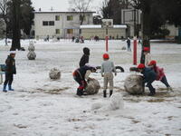 久しぶりの雪に,子ども達は大喜びです。6年生は朝から雪かきの手伝いを自主的に行っています。各学級とも,1時間目は思う存分雪遊びを行いました。校庭には子ども達の作品があります。