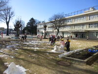 本日は快晴。暖かな日差しで,休み時間は多くの子が外で遊んでいました。雪が溶けることを名残惜しそうに,眺める子,触れる子の姿がありました。