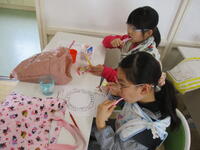 2学期最後の図工です。絵本「わたしのワンピース」をもとに,切り抜いた箇所の模様を考え,映像で撮影します。自分で書いた模様だけではなく,壁紙や教科書,色鉛筆などのものにかざして見ている子もいます。どんな模様が見えたのでしょうね。子どもの発想に驚きます。