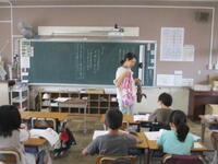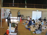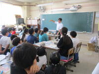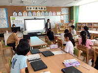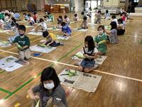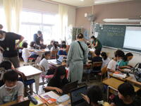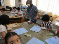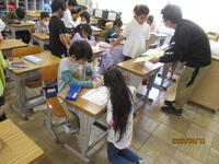 リモートで一斉に説明を行い,各教室をまわって,個別指導を行っていただきました。「子どもらしくのびのびとした字が書けていていいですね」と,お褒めの言葉をいただきました。