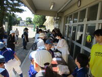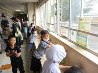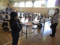 引き渡し訓練は,課業中に非常災害が合った場合,保護者に迎えに来ていただき,お子様を引き渡す訓練です。集合後も静かに並ぶことができ,大変立派でした。御協力いただいた保護者の皆様,ありがとうございました。