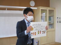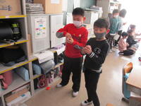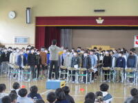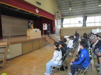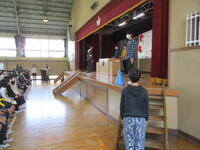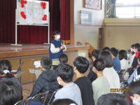 いよいよ三学期が始まりました。校長先生からは,目標を持ってうさぎのように跳躍するよい年にしましょうと,お話がありました。保健委員からは「手洗いうがい」の呼びかけがあり,動画の紹介がありました。