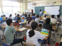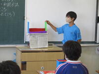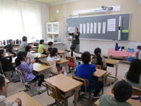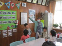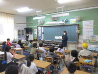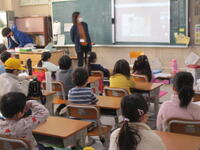 ATLのジャッキー先生,外国語の薄井先生による外国語特別授業を行っています。動物の名前を覚えて,英語で「進化じゃんけん」をしました。英語を知っている子も,知らない子も,大きな声で発音しながら外国語に親しみました。