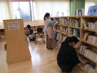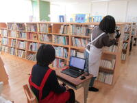 今日は,午前中10名,午後8名の方が来校し,本の整列の後,バーコードを使って一冊ずつコンピュータの目録と照合しました。本の修繕も行います。