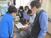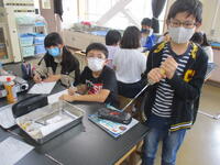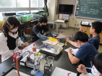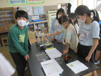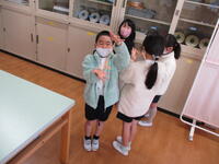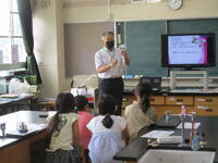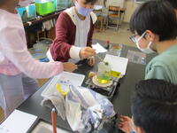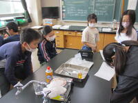 人は呼吸で体の中に何を取り入れているのでしょうか。石灰石と気体検知管を使い,酸素と二酸化炭素の量を測定しました。石灰石が濁ったことで二酸化炭素の存在があることは明らかでしたが,気体検知管で示された酸素と二酸化炭素の数値をもとに,燃焼と呼吸についての考察することができました。