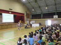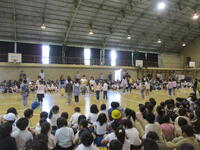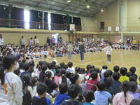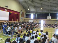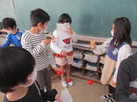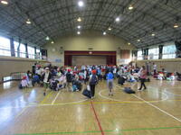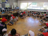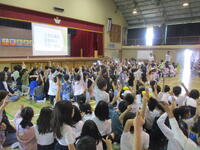児童会主催の,全校なかよし活動を行いました。異学年でグループをつくり遊びます。今回は自己紹介とレクを行いました。高学年は上手に説明して会を運営し,低学年は笑顔でレクを楽しみました。
