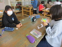 生活にあるとよいものを,デザインして木工で表現しました。自分の大切な本や小物などを納められるように,デザインや着色の工夫をしました。皆の前で利用方法と工夫について発表しました。