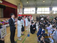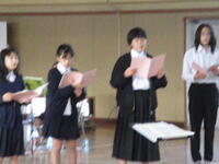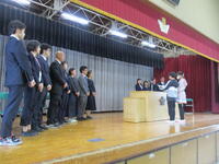各学級で選出された学級委員の任命式を行いました。あいさつ,返事,礼,すべて学級代表としてふさわしい立ち振る舞いでした。
