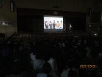 暗幕を引いた理科室で,作品鑑賞会を行いました。