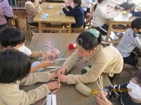 1年生は,独楽,けん玉,あやとり,おはじき,お手玉の5つの遊びを,優しいお兄さんお姉さんに教えてもらいました。