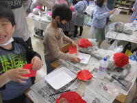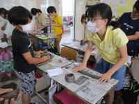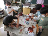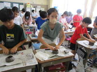 図画工作「焼き物を作ろう」の学習で,陶芸を行いました。生活に役立つものを考え,粘土をこねました。花瓶,コップ,ペン立て,皿などの作品ができました。焼き上がりで色も変わります。焼き上がりが楽しみですね。