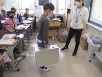 税のはたらきについて,柏税務署の皆さんから特別授業がありました。税金がなかったら,どんな世界になってしまうのでしょうか。動画を視聴して税の使われ方や税の重要性について学びました。最後は1億円と同じ重さの体験もしました。