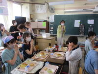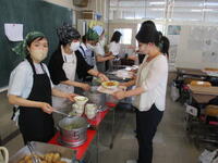校内では1年PTA学年活動・みんなの子育て広場として,給食試食会を行いました。87名の参加があり,奈須栄養士による食育講座ののち,給食指導を視察,給食の配膳と試食を行いました。味付けの良さや手間のかけ方に感動された保護者の方が多かったようです。
