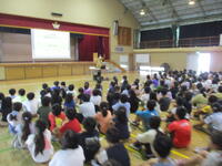 はじめに,校長先生から今年の目標「たくましさ」から5つのスローガンが示され,「こぐまのまぐの なつやすみ」の読み聞かせがありました。