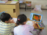1年生植物の生長する様子を定期的に観察しています。今回は,iPadを使って,記録してきたことを用紙にまとめています。今日の新しい発見は何でしたか?