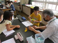 夏休みに自由研究はいかがですか? 理科好きの4年生30名が集まり「風の不思議」について考えました。風の力を使って動くもの,風の力を使って種を飛ばすものなどについて実験しました。後半は自由研究のまとめ方について,理科教育支援員の福岡先生から話がありました。