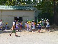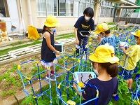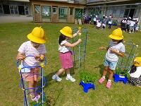 アサガオの支柱を立てました。(1年・生活科)