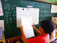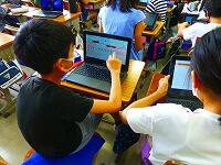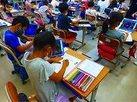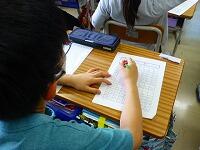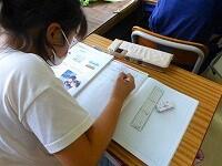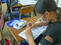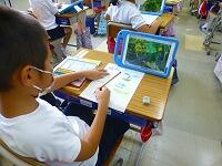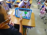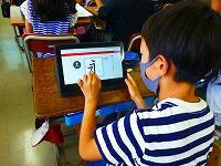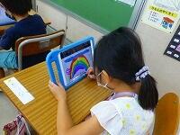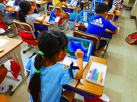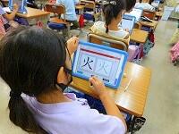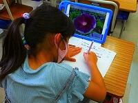 タブレットPCを使って,漢字の練習をしています。気をつけるところがすぐに提示されたり,上手に書けると大きな丸がついたりと,子供達も夢中で取り組んでいます。