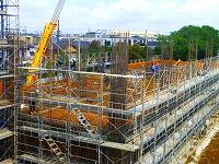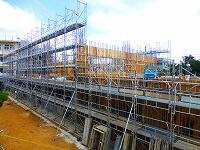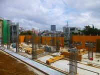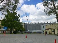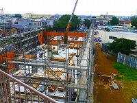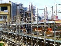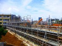 新校舎は,ほぼその規模が見えるようになってきました。第1校舎とつながる通路も工事が着々と進んでいます。