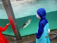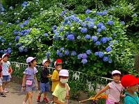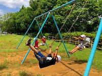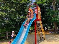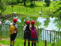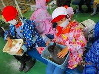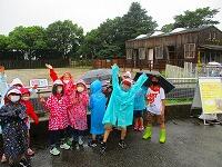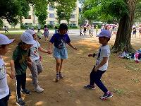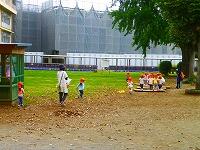 可愛いお客さんが,お散歩に来ています。丸池の鯉やウサギは大人気,縄跳び台も気に入ったようですね。