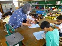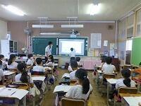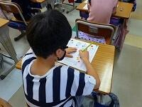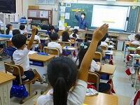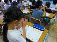 英語で話した「夏休みの思い出」からクイズを出して,答える学習をしていました。みんな良く聞き取って,答えています。慣れ親しむことは大切ですね。