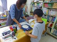 休み時間の図書室には,本が大好きな子供達が訪れます。その中でも,本の整理や分類などに活躍しているのが「子ども司書」の皆さんです。今日も,読む人のことを考えて本の整理をしてくれています。