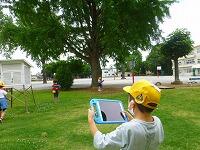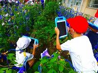 理科の学習で,動物(虫)が住んでいる場所の学習をしています。今日は,虫が校庭のどの辺りにいるのかを探しながら,見つけた虫の写真を撮影していました。