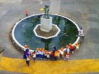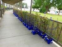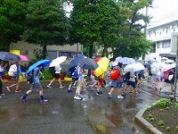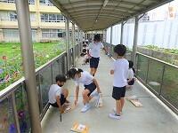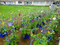 報道によれば,今夜から明日の夕方にかけて,台風14号が接近するとのことです。1年生は,強い風に備えて三小ロードと校舎の壁際にアサガオを避難させています。