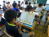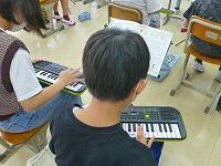 普段は鍵盤ハーモニカ等で演奏するのですが,飛沫が飛ぶ活動はできませんので,一人1台のミニキーボードを活用して演奏の練習をしています。
