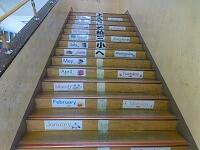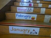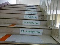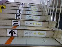 以前「階段に英語の単語を掲示しています。」とお伝えしましたが,種類と数が増えました。季節や月だけでなく,教科名や数も掲示しています。階段を上っていると自然と目に入るので,覚えやすいです。