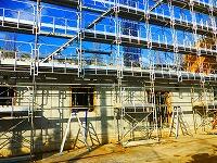 道路沿いのフェンスも,完成が近づきました。今月中には出来上がりそうです。新校舎も外壁の木枠が外され,コンクリートの外観が見えるようになりました。今は主に内装関係の工事をしているそうです。