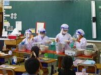 今日から給食が始まりました。準備の前にはしっかり手洗いをし,給食当番はマスクの上にフェイスシールドを着用しています。食べている間は,「黙食」を徹底しています。