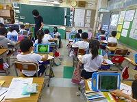 今日の午後にオンライン授業の接続テストを行います。低学年の教室では,何台かのタブレットPCを使ったり,HPの動画を見たりしながら,接続の方法を確認していました。