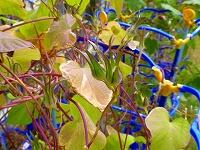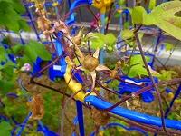 1年生が育てている朝顔も,実りの季節を迎えました。まだきれいに咲いている花もありますが,そこここに種ができています。