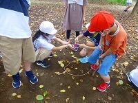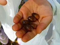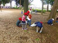 今日は学校近くの日立台公園へ,公園探検に行きました。公園には,どんぐりがたくさん落ちています。「大きいのがあったよ。」「見てみて,帽子だけ。」「穴が開いてるからだめだ。」みんな少しでもきれいなどんぐりを拾おうと,夢中になっていました。拾ったどんぐりは,お家で「煮る」か「蒸す」か「冷凍」して,虫食いが進まないようにするそうです。保護者の皆様,ご協力お願いします。