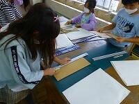 6年生は家庭科でトートバッグを作ります。今日は布に印をつけたり,仮止めをしたりしています。どんな作品ができたのか,後日お伝えしたいと思います。
