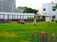 順番を待っている間も,校庭の銀杏や工事用の重機,芝生などの写真をたくさん撮っていました。