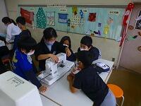 5年生は「エプロン作り」にミシンを使います。今日はミシンに糸を通して,縫う準備をしていました。小さい穴に糸を通したり,下糸を準備したりと教え合いながら取り組んでいます。