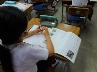 2年生の国語は,説明文「すみれとあり」です。すみれが種を遠くまで運ぶために,ありとの協力関係を築いていることを読み取ります。「ありに種を運んでもらうための工夫がわかりました。」「ありも得をするので良いと思います。」等々,感想を交えて活発な発表がありました。
