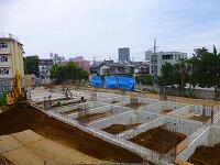 基礎工事もほぼ完成に近づき,土台に土を戻す作業が進んでいます。
