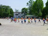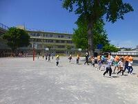 密になることを防ぐため2回に分けた避難訓練の,今日は2回目でした。1年生は小学校で初めての訓練で,少し緊張した様子でしたが,走ったり並んだりと一生懸命取り組んでいました。