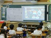 1年生は,21日に学校探検をする予定です。一昨年度までは2年生が一緒に校内を歩いて案内をしていましたが,感染症予防のため違う学年との交流ができません。代わりに,2年生が案内の動画を作ってくれました。「ここは理科室です。3年生になったら理科の学習で使います。」「ここは図書室です。たくさん本を読んでくださいね。」校内の案内図で場所を確かめながら,動画を見ている1年生。どんな新しい発見があるのでしょう。楽しみですね。