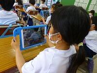 今日はiPadを使って,算数の数の学習と写真の撮り方の練習をしました。「同意する」や「設定」など,1年生には難しい漢字や言葉が出てくることも多く,はじめは戸惑っていた子どもたちも,しばらくすると説明をする前にどんどん新しい機能を見つけて使いこなしていました。さすが,今時の子どもたちですね。