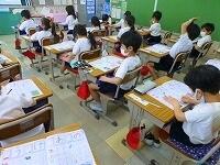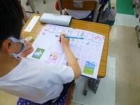 今日の国語は,ひらがなの練習です。一画一画丁寧に書いています。みんな花丸です。
