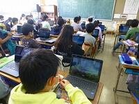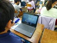 5年生の理科では,天気の移り変わりについて学習しています。実際に雲の動きを観察するのですが,晴天が続いていることもあり,足りない部分は1人1台のタブレットで動画を見て確認しています。何度も繰り返し見たり,長時間撮影した動画を早送りで見たりすることができるので,とても便利です。