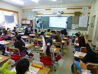 2年生の教室では,「きこえの学習」をしています。きこえの教室の先生から,めがねをかけている人,補聴器を使っている人,車椅子の人,違いはあってもそれで良いのだというお話をしていただき,みんな真剣に聞いていました。
