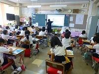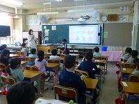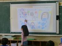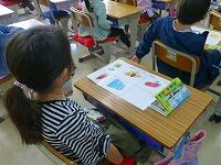 1年生は自己紹介を兼ねて,「すきなもの」の絵を描きました。友だちの前で自分の名前を言い,「ぼくのすきなものは,サッカーです。」「私の好きなものは,犬です。」と大きな声ではっきりと発表することができました。