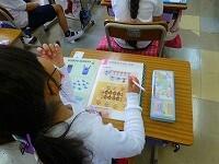 対応するものを線でつないで,数を確かめています。「こんなのかんたんだよ。」「できました!」みんなとても意欲的です。鉛筆の持ち方も,上手ですね。